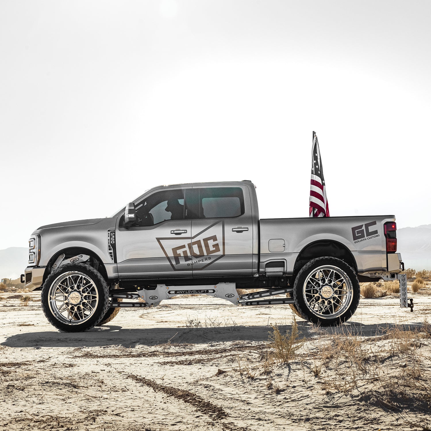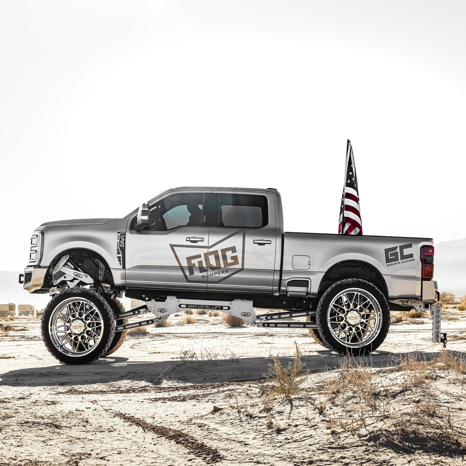THE ANY LEVEL LIFT ISN'T YOUR ORDINARY LIFT KIT. THIS PATENTED SUSPENSION SYSTEM GIVES YOU THE ABILITY TO CONTROL THE RIDE HEIGHT OF YOUR TRUCK. WITH OVER 12" OF RIDE HEIGHT ADJUSTMENT WITHOUT IMPACT TO RIDE QUALITY, STEERING ALIGNMENT, OR AXLE POSITIONING THE ANY LEVEL LIFT GIVES YOU THE ABILITY TO DO IT ALL.