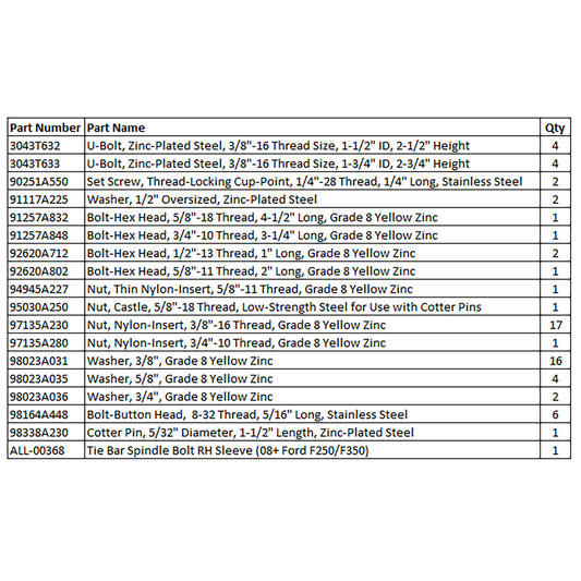 Panhard Axle Mount Hardware Kit (11+ Super duty)Regular price $33.33 USDRegular priceUnit price per-