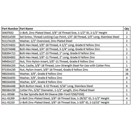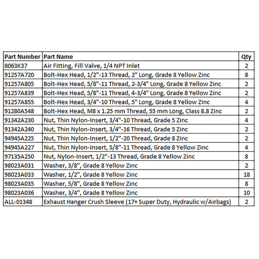 Rear Subframe Hardware Kit (17+ Super Duty, Hydraulic w/Airbags)Regular price $60.80 USDRegular priceUnit price per-
