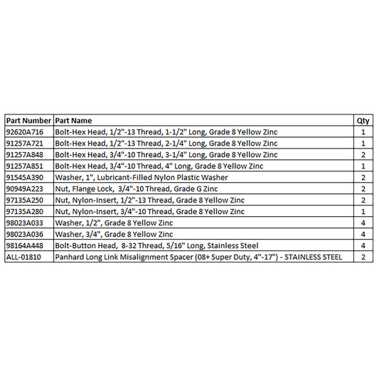Panhard Hardware Kit (11+ Super duty, 4-17" Lift)Regular price $53.13 USDRegular priceUnit price per-