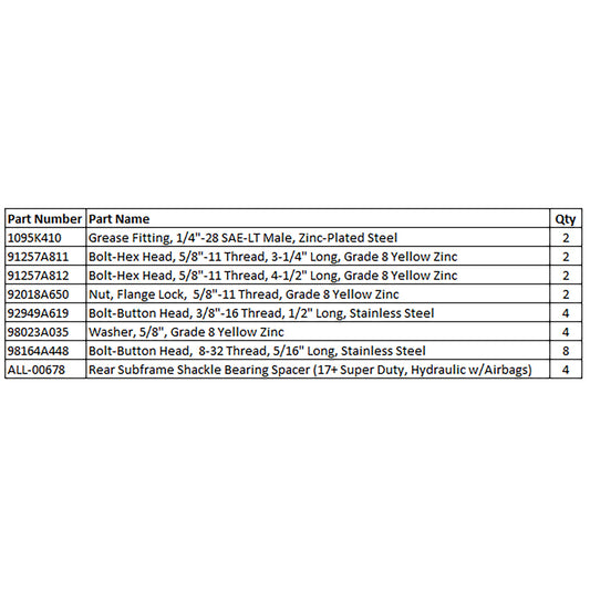 Arm Hardware Kit (Front & Rear, 17+ Super Duty, Hydraulic w/Airbags)Regular price $35.35 USDRegular priceUnit price per-