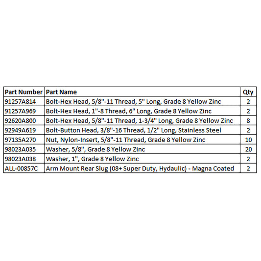 Arm Mount Front LH Hardware Kit (17+ F250/F350, 18+ F450, Hydraulic)Regular price $28.21 USDRegular priceUnit price per-