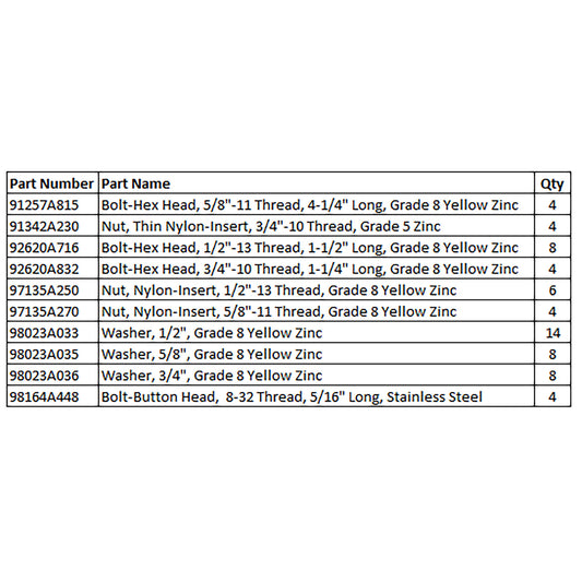 Arm Hardware Kit (Front & Rear, Hydraulic)Regular price $20.33 USDRegular priceUnit price per-