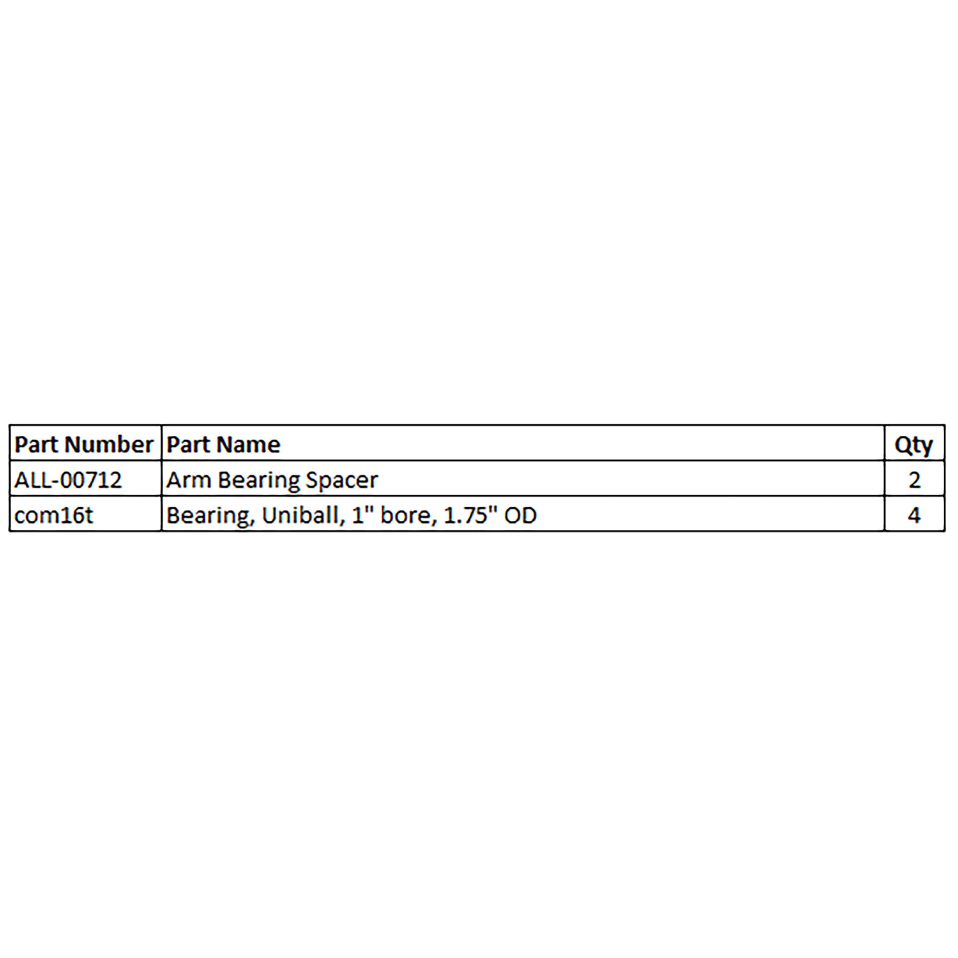 Description: All the bearings and spacers used in the our Any Level Lift Lever Arms.
