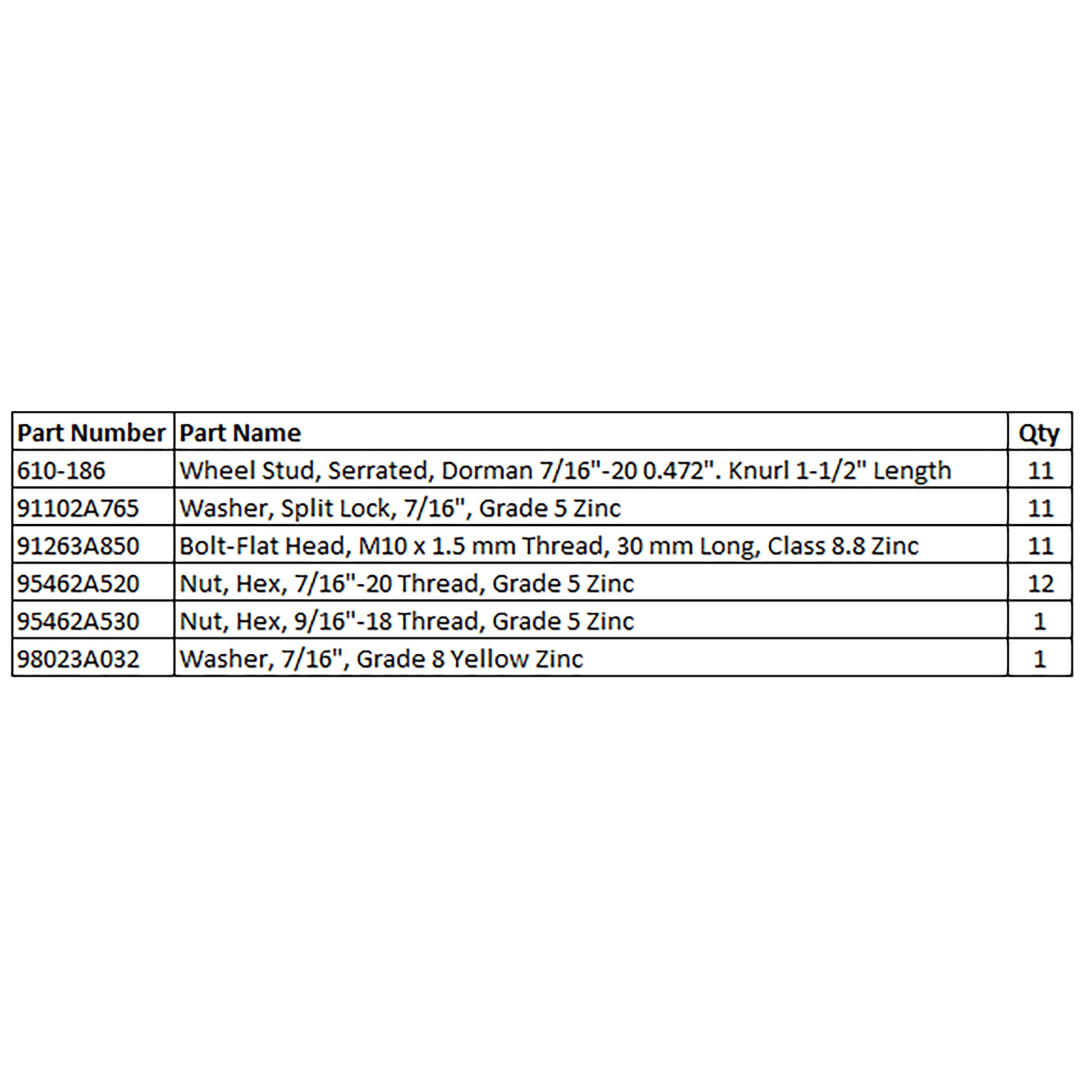 Kit Contents: Refer to the second picture for a detailed parts list of kit components and quantities. The parts list displays the corresponding part numbers from www.mcmaster.com if you need detailed information on each component included in the kit.