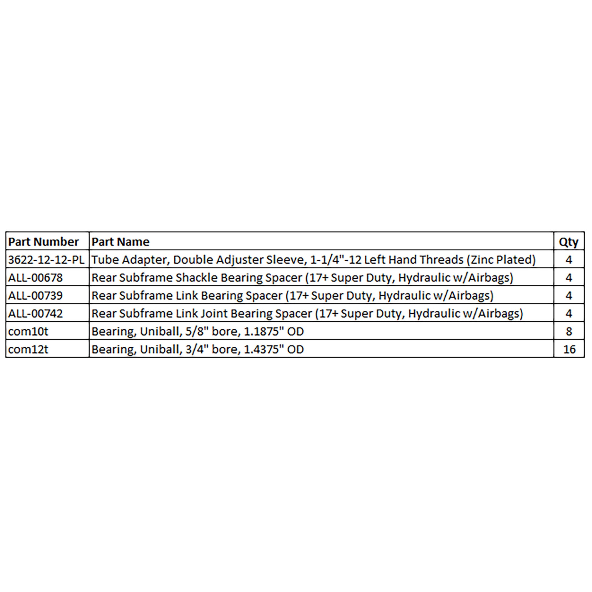 Rear Subframe Joint Kit (17+ Super Duty, Hydraulic w/Airbags)